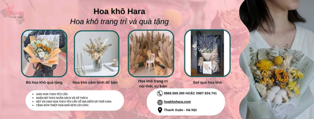 Với các sản phẩm về hoa khô, Hoa khô Hara mong muốn mang đến vẻ đẹp và giá trị độc đáo cho khách hàng. Chúng mình tin rằng hoa khô không chỉ là một vật trang trí tuyệt vời mà còn là biểu tượng của sự bền vững và sự tươi mới mãi mãi