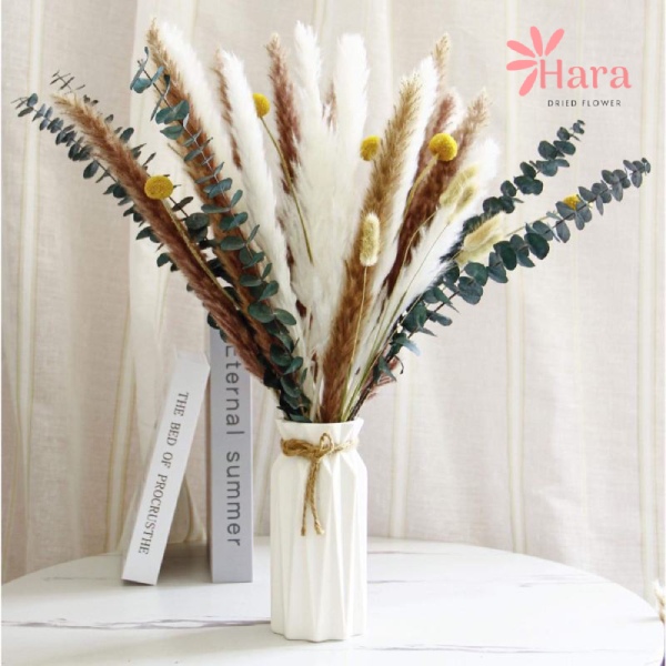 Bình hoa khô để bàn Hara L1 mix cỏ lau khô trang trí phòng khách, phòng ngủ,…
