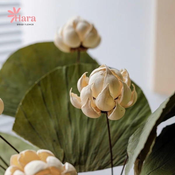 Chất Liệu: lá thật sấy khô, hoa sen chất liệu DIY