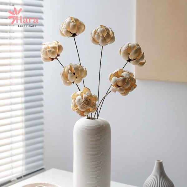 Tên: Bình hoa sen trắng khô DIY mix lá sen thật sấy khô
