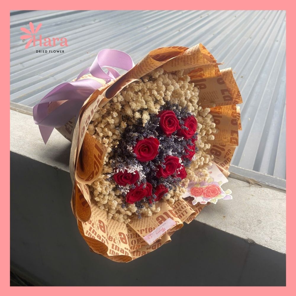 | Thành phần | Hoa hồng khô đỏ, lavender khô, hoa baby khô |