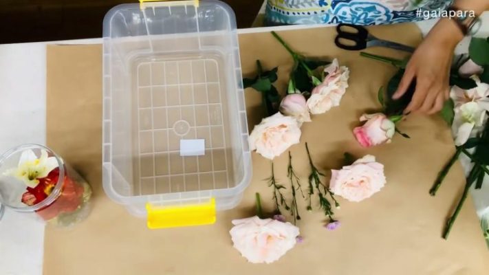 • Cắt cành hoa sao cho vừa với chiều cao của hộp.