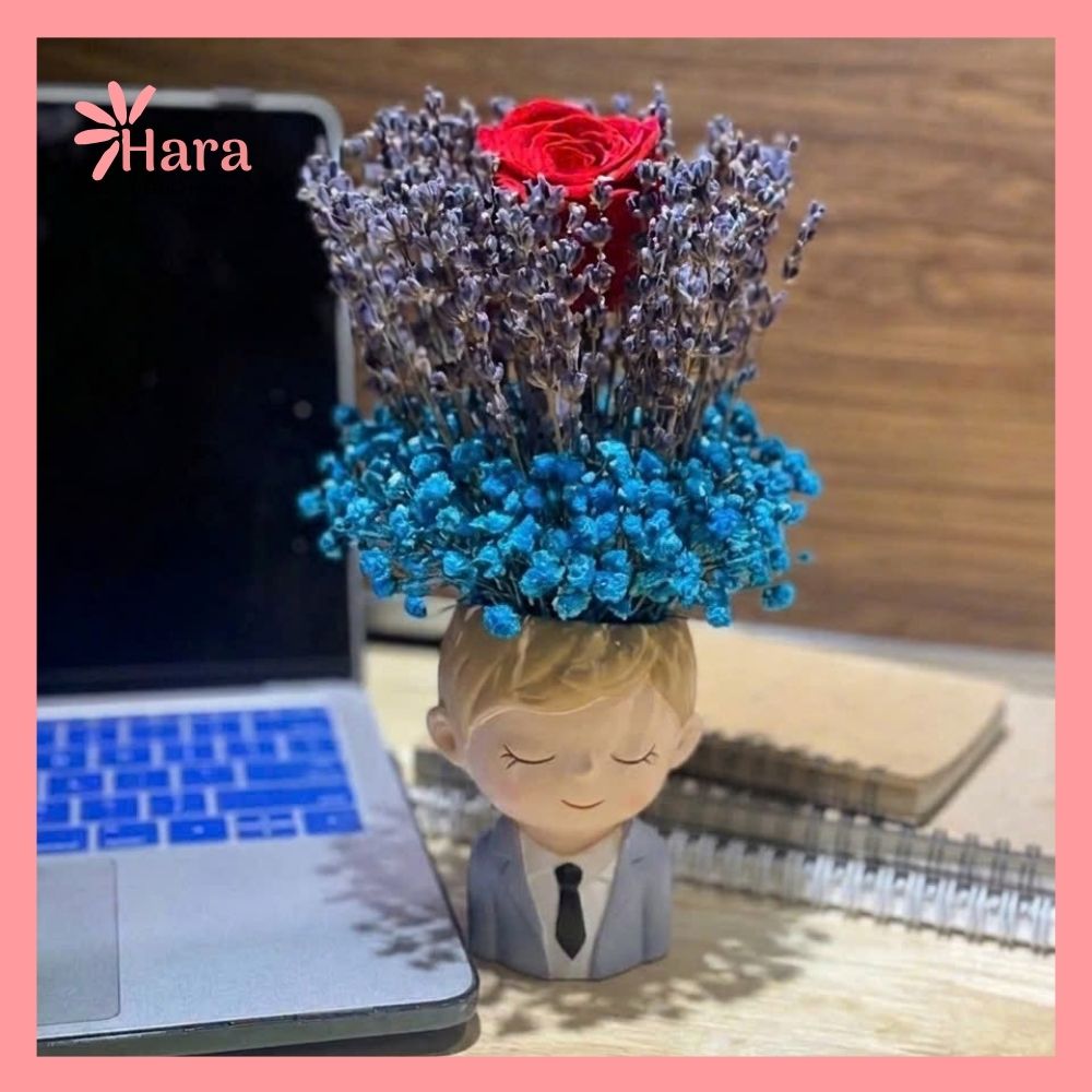 Lọ hoa lavender khô để bàn Hara108 là sản phẩm decor mang phong cách dễ thương và tinh tế, kết hợp giữa hoa lavender khô tự nhiên cùng thiết kế lọ gốm hình cặp đôi độc đáo.