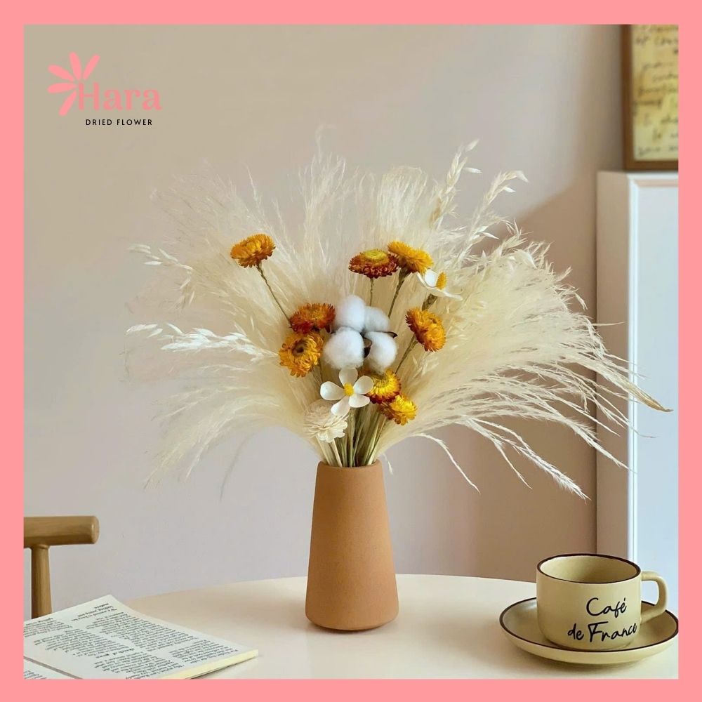 | Chất liệu hoa | Hoa khô tự nhiên (pampas, cotton, hoa bất tử) |