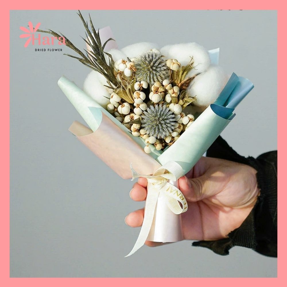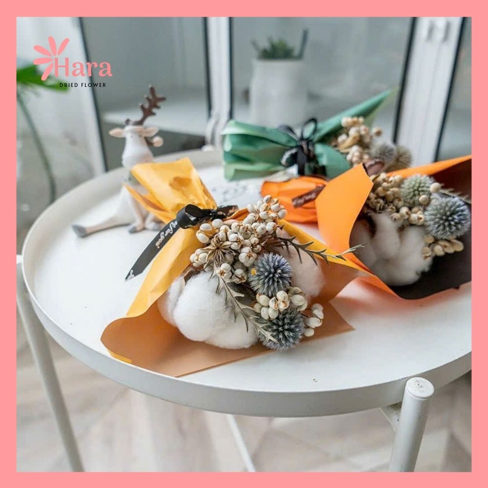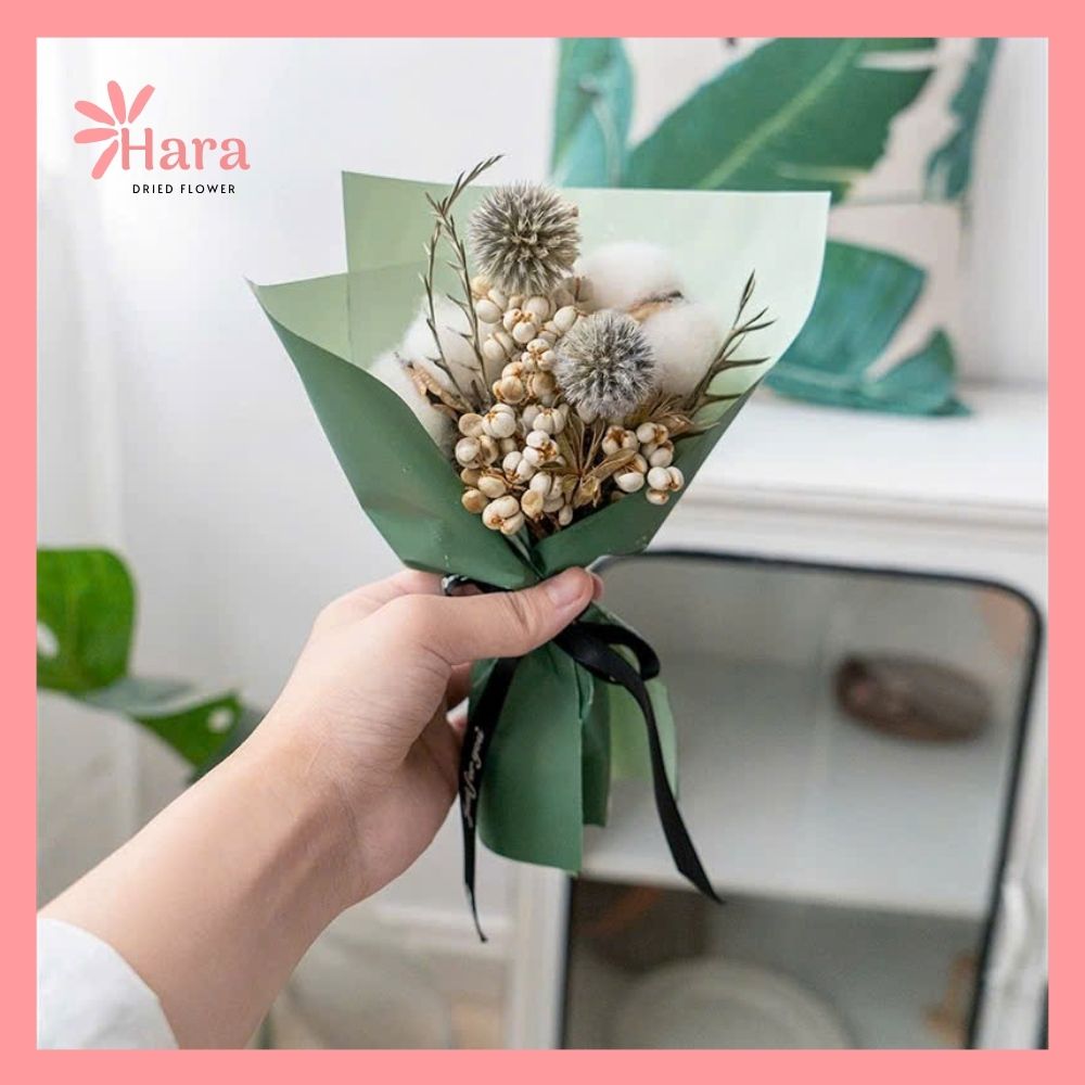 - Chất liệu: Hoa khô tự nhiên + giấy gói nghệ thuật